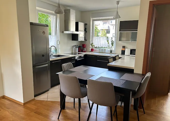 位于弗罗茨瓦夫法布里兹纳区,Quiet Enclave Near The Airport公寓距离罗茨瓦夫-斯特拉霍维采机场10公里. 1间卧室的套房设有1间浴室和设施齐全的厨房.